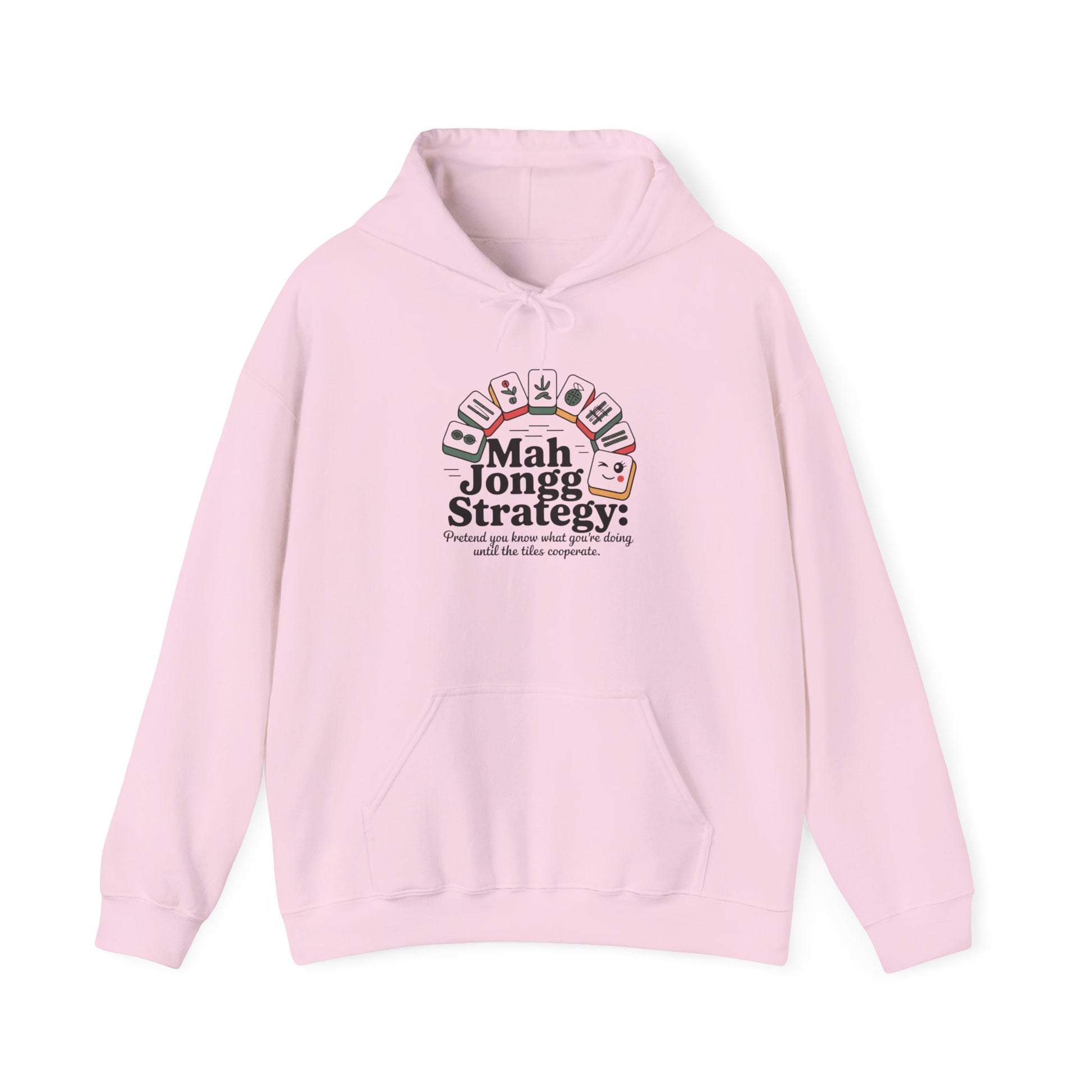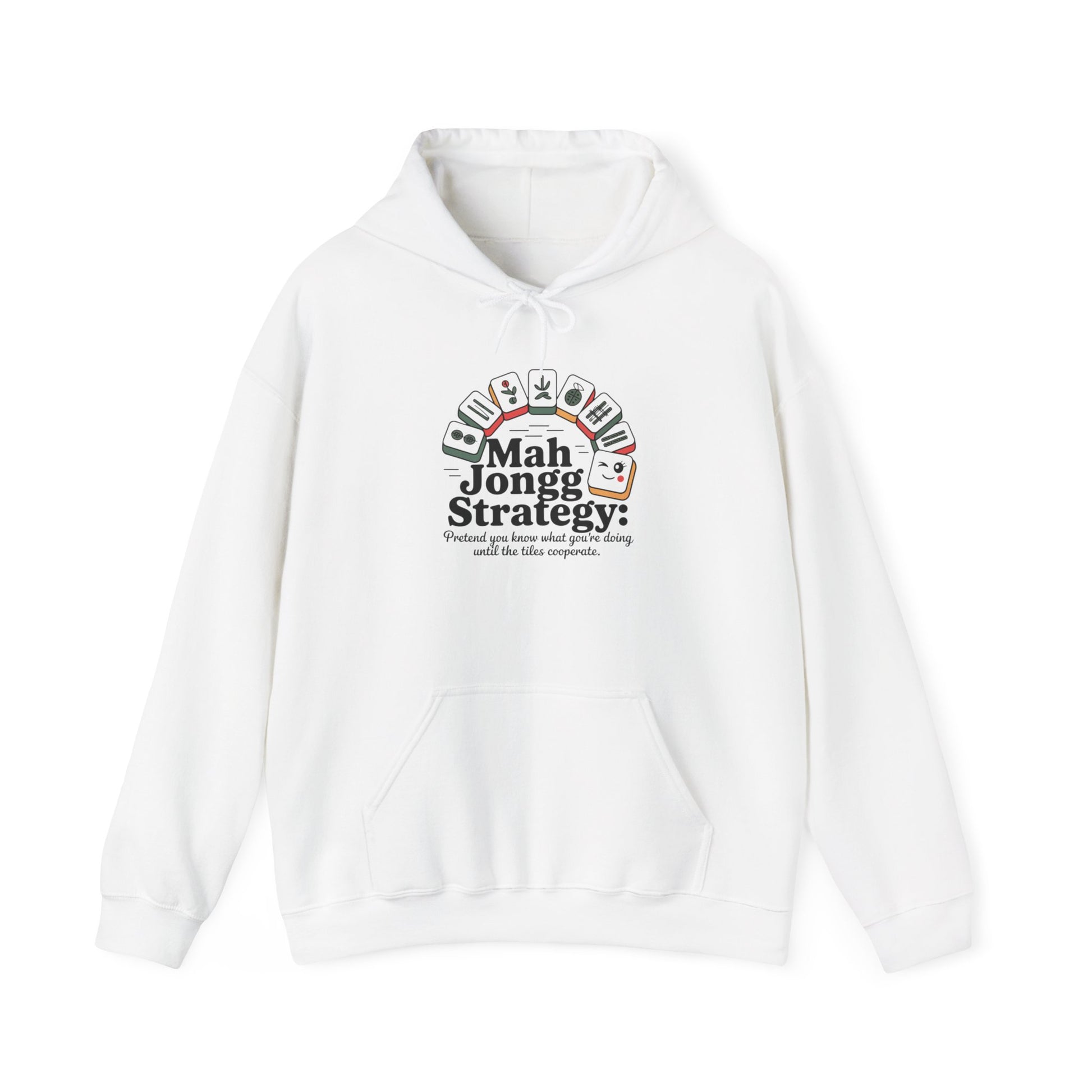 Soft, whimsical hoodie brings a wink of humor to the Mah Jongg table. The playful line—"Mah Jongg Strategy: pretend you know what you're doing until the tiles cooperate"—is paired with illustrated Mah Jongg tiles that feel like a private joke between players. Lighthearted and understated, it layers easily for chilly evenings or relaxed days; it reads like the conversation starter you’ve been missing. It’s for people who love the game, the laughter, and the small, strategic victories that come with each hand.