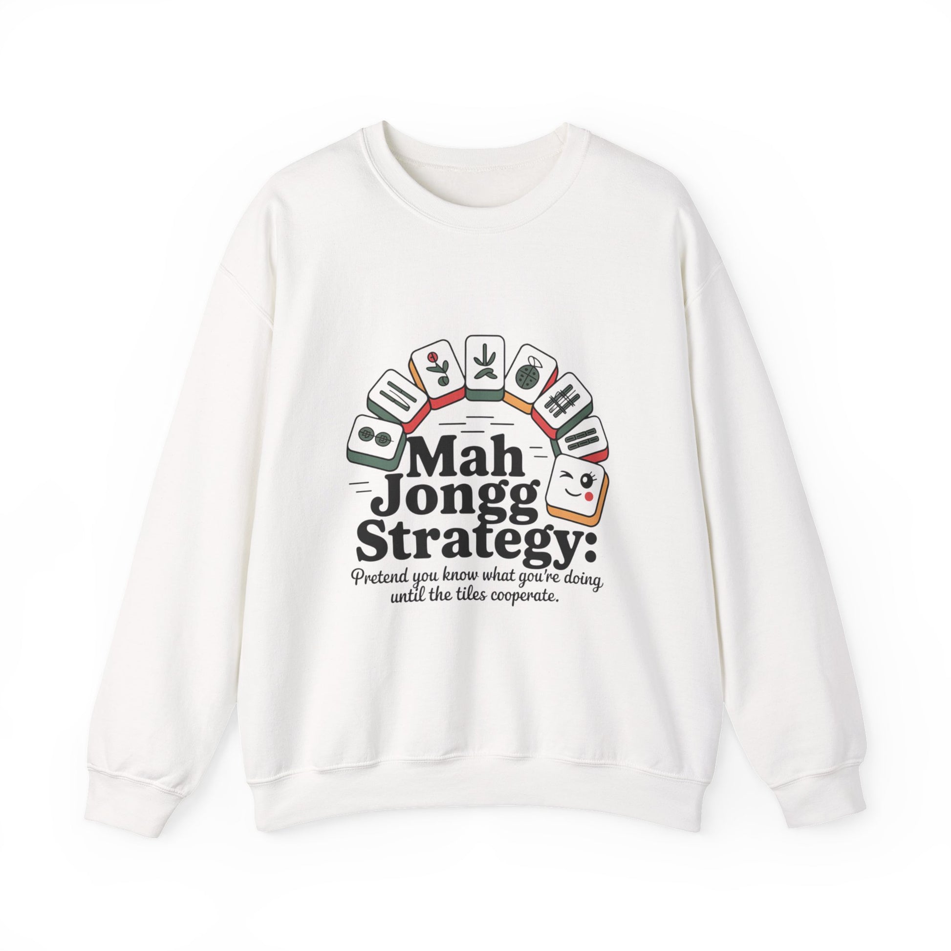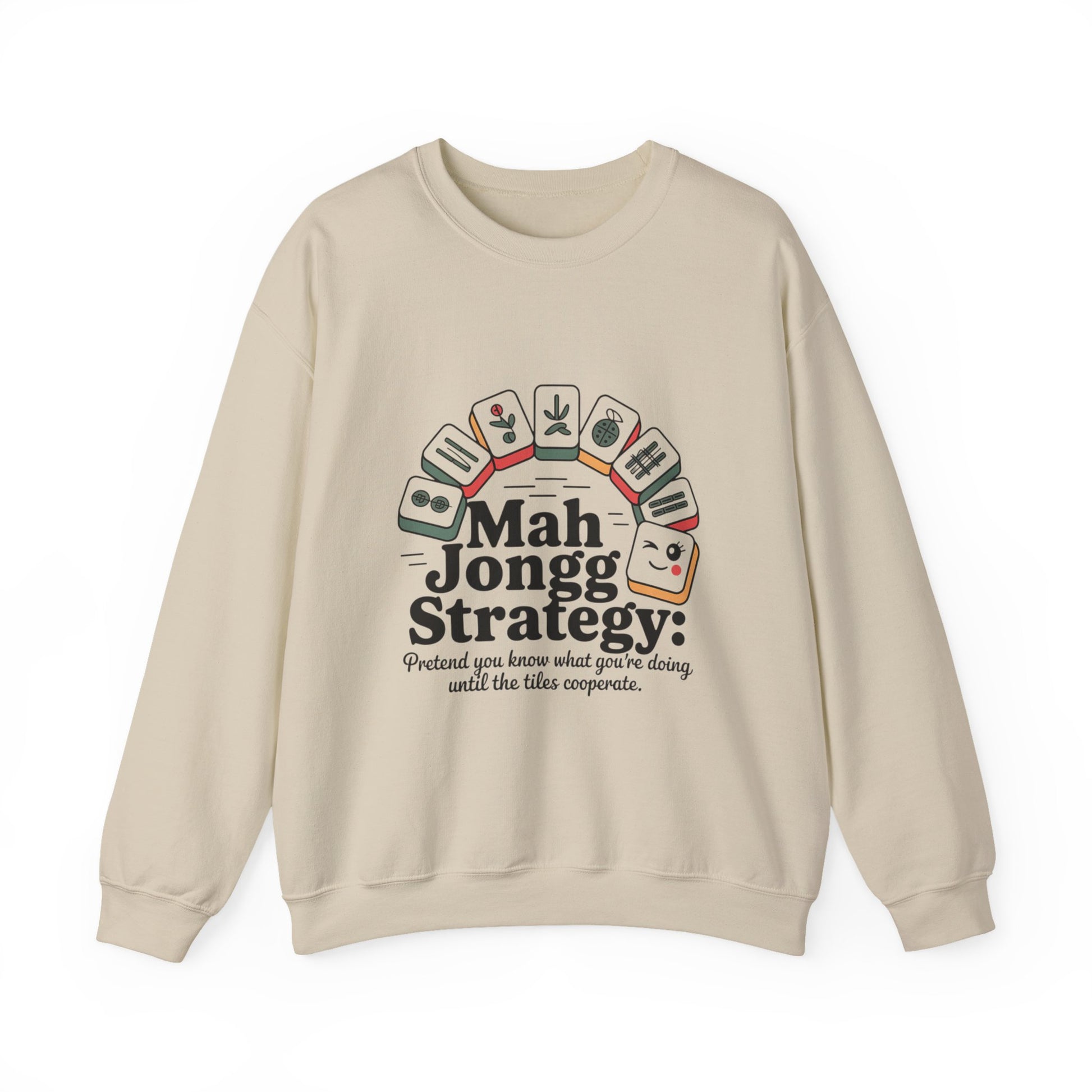 Soft, whimsical crew sweatshirt brings a wink of humor to the Mah Jongg table. The playful line—"Mah Jongg Strategy: pretend you know what you're doing until the tiles cooperate"—is paired with illustrated Mah Jongg tiles that feel like a private joke between players. Lighthearted and understated, it layers easily for chilly evenings or relaxed days; it reads like the conversation starter you’ve been missing. It’s for people who love the game, the laughter, and the small, strategic victories that come with each hand.