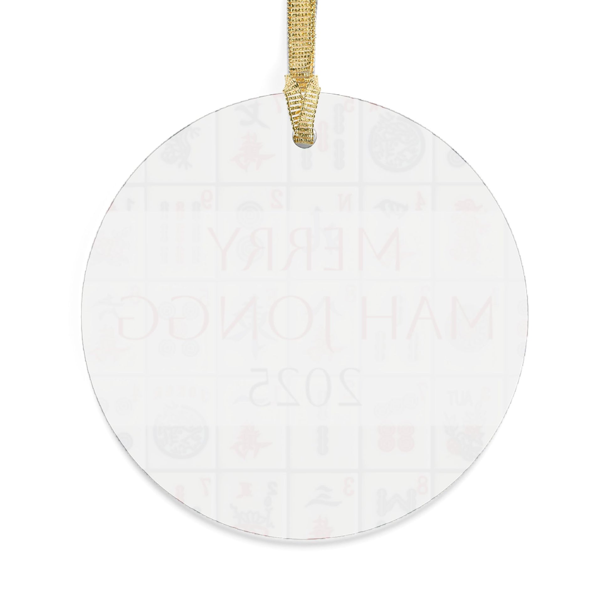 Add a touch of festive flair with this acrylic ornament featuring classic Mah Jongg tiles and the phrase 'Merry Mah Jongg 2025.' Perfect for Mah Jongg enthusiasts looking to add a unique and personalized touch to their holiday decor.